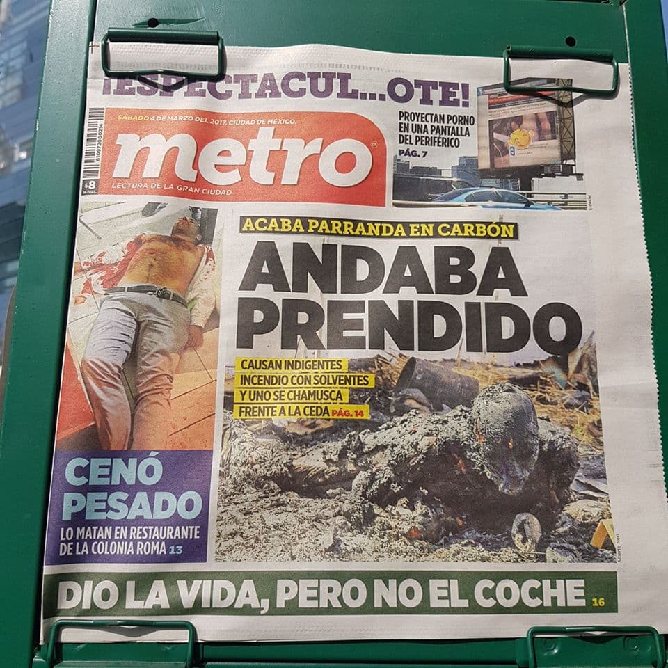 Una vez más el Metro hace de las suyas con fotografías que incitan al morbo y titulares con los que uno no sabe si reír o llorar.