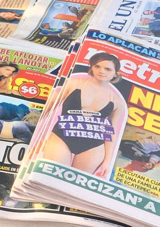 No conformes con la fotografía que eligieron de Emma Watson, en el diario Metro redactaron esta desagradable cabeza en doble sentido.