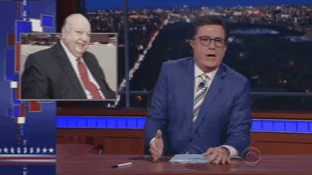 En primer lugar, celebremos y estemos seguros: Jon Stewart no nos ha abandonado. El programa The Late Show con Stepen Colbert abrió con su normal anfitrión pero de repente Jon Stewart salió de debajo de la mesa. ¿La razón? Ambos están festejando que el CEO de Fox News, Roger Ailes, renunció después de una demanda de acoso sexual (luego de repetidas acusaciones).
