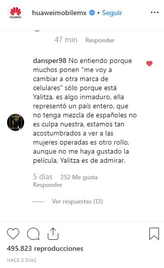 Algunos comentarios de la publicación recriminaban a Huawei por haber contratado precisamente a Yalitza. No faltó quienes dijeron que "se cambiarían de marca", pero algunos internautas lo entendieron todo y aplicaron un "siéntese señor" a los inconformes.