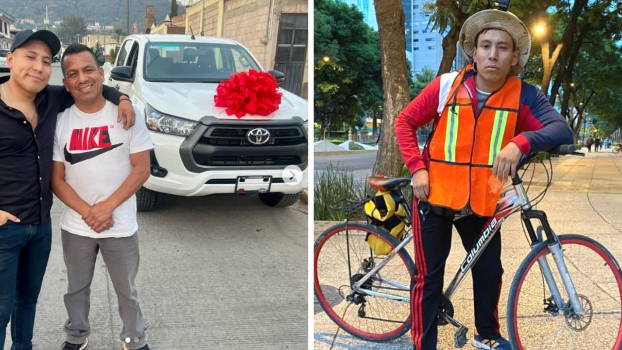 "Mi jefe trabaja de lunes a domingo, es muy chambeador y él ha sido mi motivación. Cuando era morrito mi papá me dio una bici, ha salido en varios videos y si mi papá me dio una bici yo le voy a dar una camioneta", fue como comenzó su video.