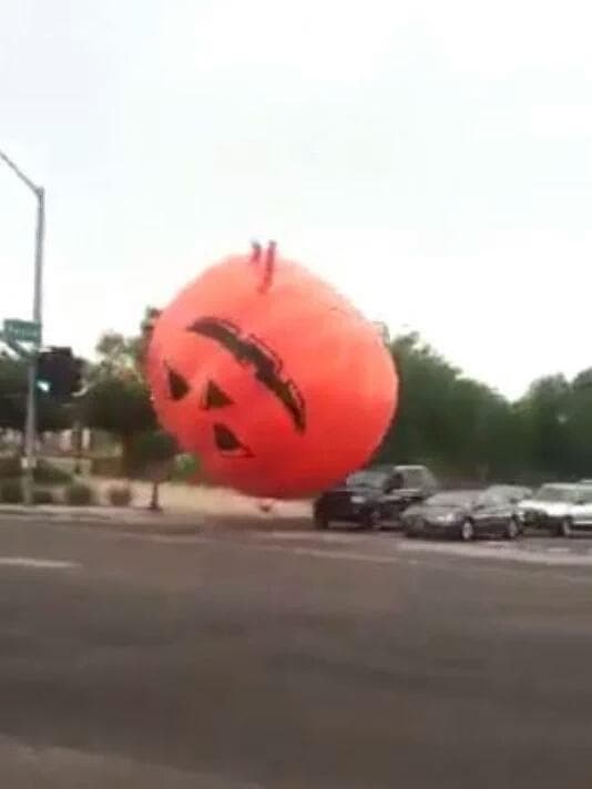 Phoenix- Los residentes de Peoria se llevaron una gran sorpresa de Halloween: una gigantesca calabaza inflable que andaba merodeando las calles y que tumbó dos postes de electricidad. Según ABC15, la calabaza de 14 pies de altura estaba frente del Centro de Artes Escénicas de Peoria cuando se “escapó.”