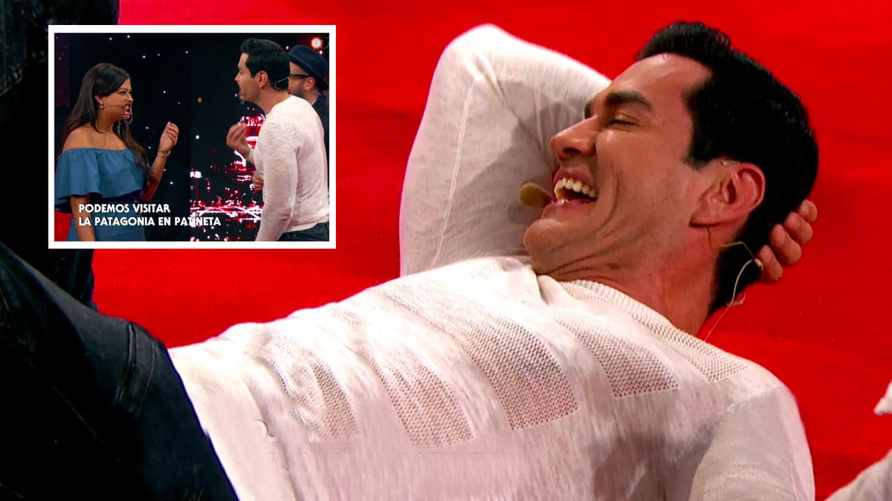 El actor intentó repetir una oración a Mariana Echeverría para completar un juego. Sin embargo, el dispositivo que tenía en la boca salió disparado y David no contuvo la risa.