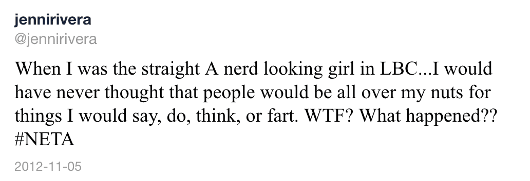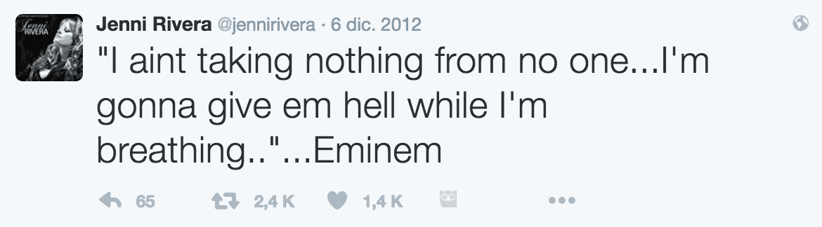 Lo que se sabe de sus vínculos es precisamente a través de la ‘Dama Venenosa’, pues como ella siempre dice en sus publicaciones, su “pecho no es bodega” y todo tiene que exponerlo. Según sus relatos, tanto en Twitter como en videos en YouTube, ella fue empleada de Jenni Rivera. Cuando la ‘Diva de la Banda’ falleció, el pasado 9 de diciembre de 2012, este personaje cobró vida a través de las redes sociales, promoviendo el trabajo y legado de su ídolo y velando por los cinco hijos de la cantante.