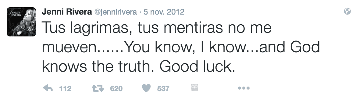 Una de ellas, fue que tanto la mamá de la ‘Diva de la Banda’, doña Rosa Saavedra, como sus hijos Rosie Rivera y Juan, publicaron un video en el cual aseguraron que Jenni Rivera se equivocó al creer que su hija mayor, Chiquis Rivera, la había traicionado con el que era su marido, el pelotero jubilado Esteban Loaíza. Según gran parte de la familia Rivera, todos menos Lupillo, la intérprete de ‘Inolvidable’ estaba tensa en los días previos a su fallecimiento y señalaron que las dietas tan estrictas que hacía le habían hecho daño y no le permitían pensar bien.