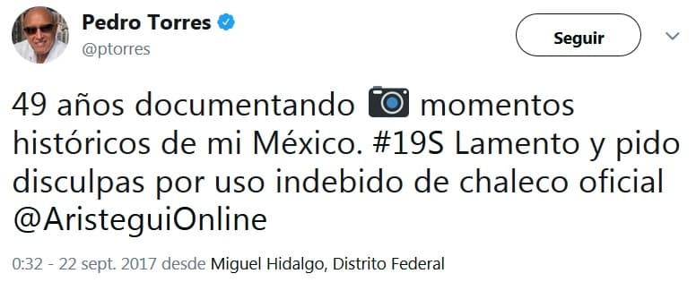Ante la reacción en redes sociales, el productor del video de la canción de Luis Miguel 'La Incondicional' se disculpó en Tweeter: "49 años documentando momentos históricos de mi México. Lamento y pido disculpas por uso indebido de chaleco oficial"