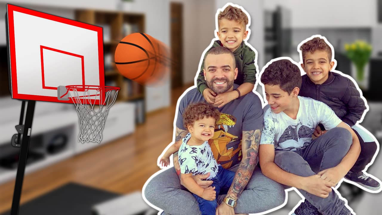 En medio de la sala y el televisor: así fue el divertido partido de baloncesto de Nacho y sus hijos