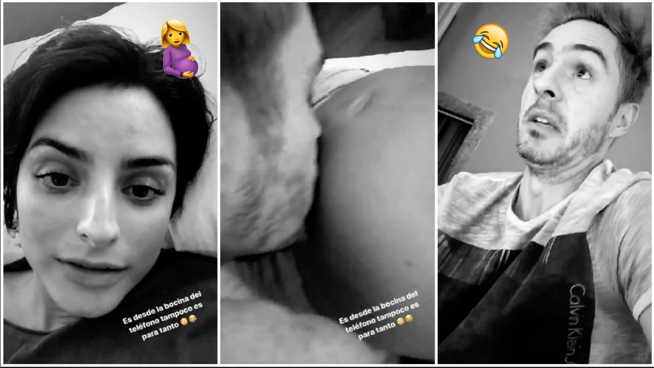 El actor le dice “mámá 'bully'” a su esposa al oírla comentar de forma divertida que, cuando al bebé en su vientre le ponen música, al parecer, le da hipo o se esconde como si estuviera asustado.