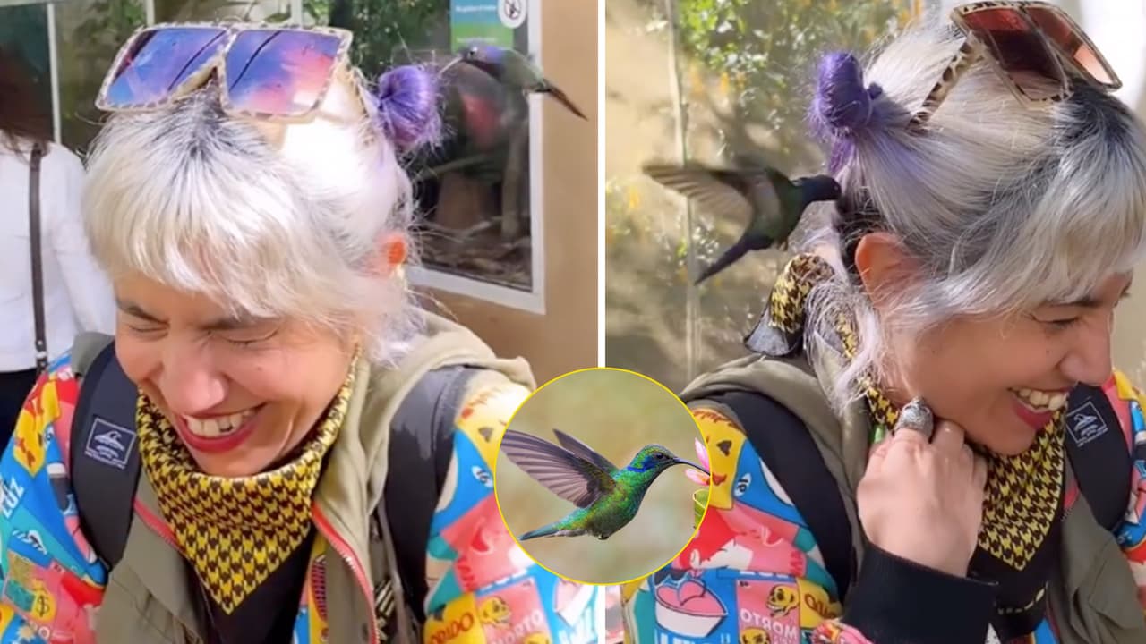 ¡Un colibrí travieso confundió el cabello morado de una chica con una flor! La divertida escena, captada en México, muestra al pequeño colibrí revoloteando alrededor del cabello de la mujer, intentando sacarle néctar y no podrás creer cómo reaccionó ella. Te compartimos el video que se hizo viral.