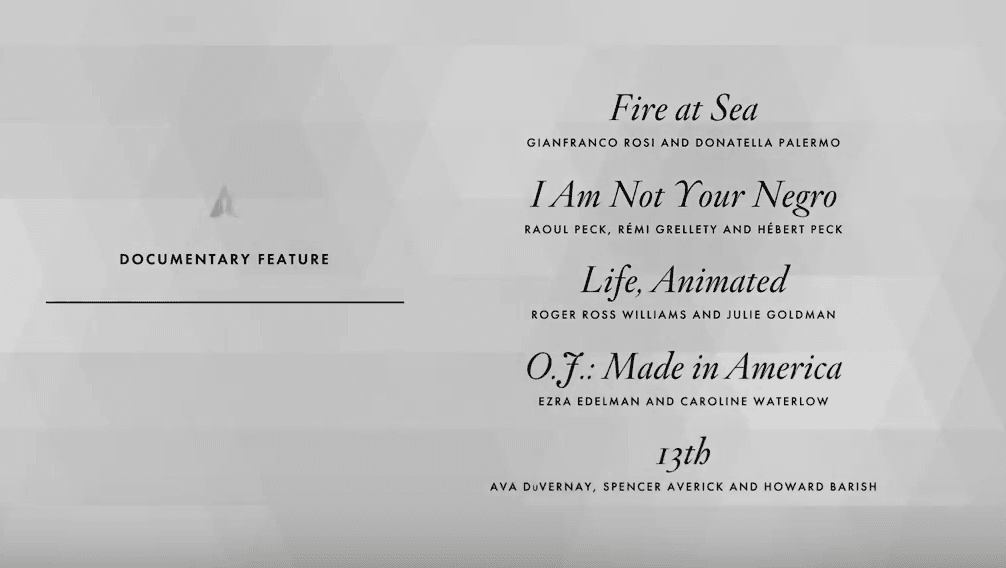 Por primera vez, la Academia realizó el anuncio a través de una producción pregrabada, que fue dividida en dos partes para insertar en el medio un video sobre la ceremonia de premiación, que este año será conducida por primera vez por el productor y comediante Jimmy Kimmel.