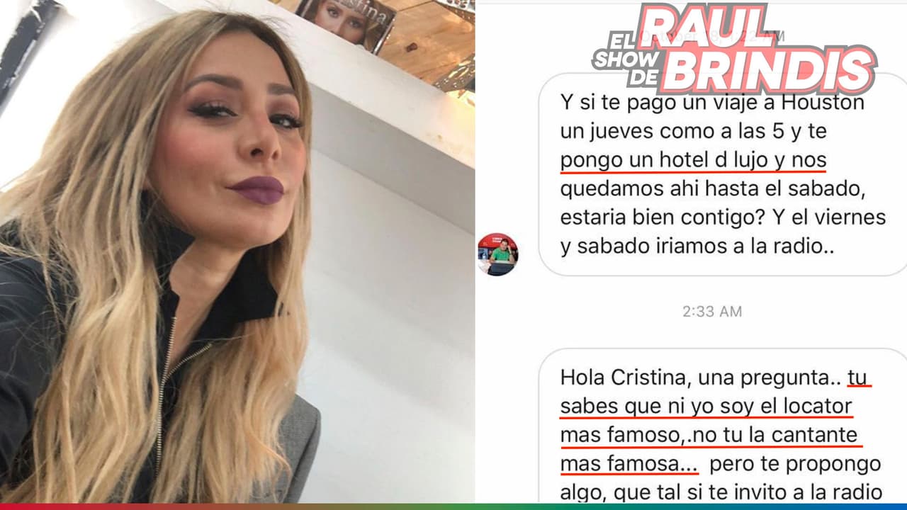 Un segundo mensaje fue enviado de manera privada a la cantante a las 2:33 de la mañana donde le explicaba mejor su propuesta: “Hola Cristina, una pregunta… tu sabes que no yo soy el locutor más famoso, ni tu eres la cantante más famosa... pero te propongo algo, qué tal si te invito a la radio este viernes. Te mando tu boleto para que llegues aquí a las 9 am, paso por ti, vamos a la radio, después vamos al hotel que te voy a seleccionar. Después vamos a la radio y estamos juntos… Y te doy tu lanita (dinero) ¿cómo ves?”.