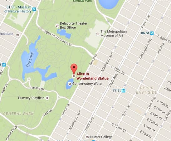 La estatua con más votos fue la de Alicia en el país de las maravillas, ubicada en la calle 75 con 5ta Avenida desde el año 1959, desde que el filántropo George Delacorte comisionó la estatua de bronce como regalo a los niños de Nueva York y como tributo a su difunta esposa, Margarita, quien amaba leer este libro a sus hijos.