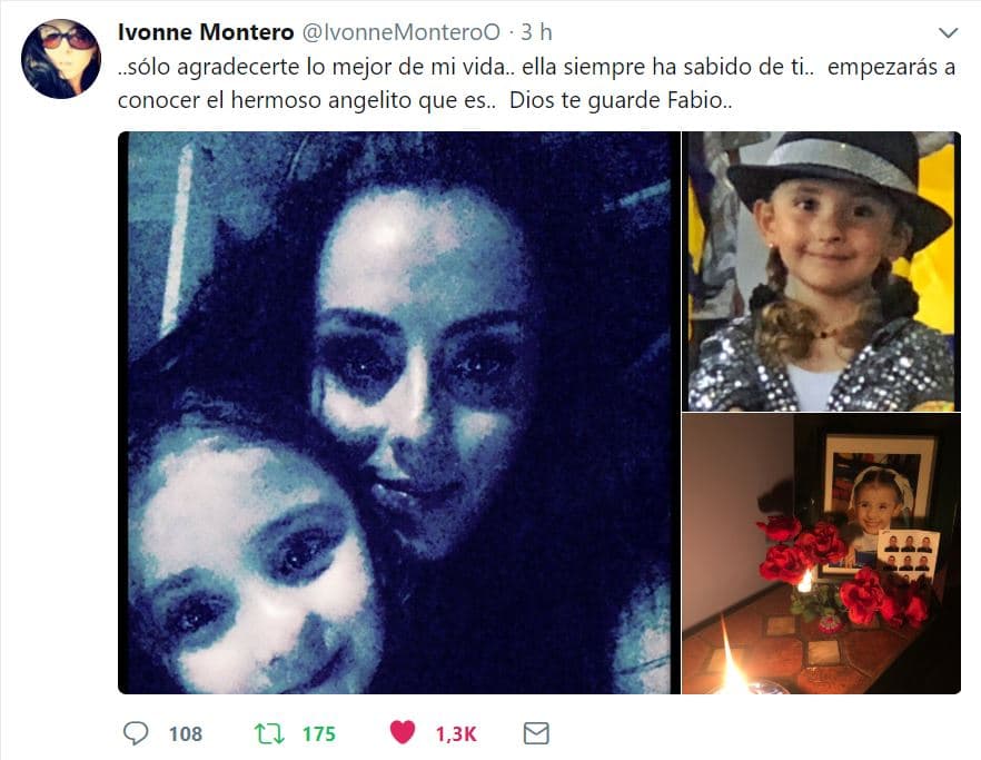 Univision Entretenimiento intentó conversar con la actriz pero no obtuvimos respuesta. La tarde del jueves Montero compartió a través de sus redes sociales el mensaje: “Sólo agradecerte lo mejor de mi vida, ella siempre ha sabido de ti. Empezarás a conocer el hermoso angelito que es, Dios te guarde Fabio”.