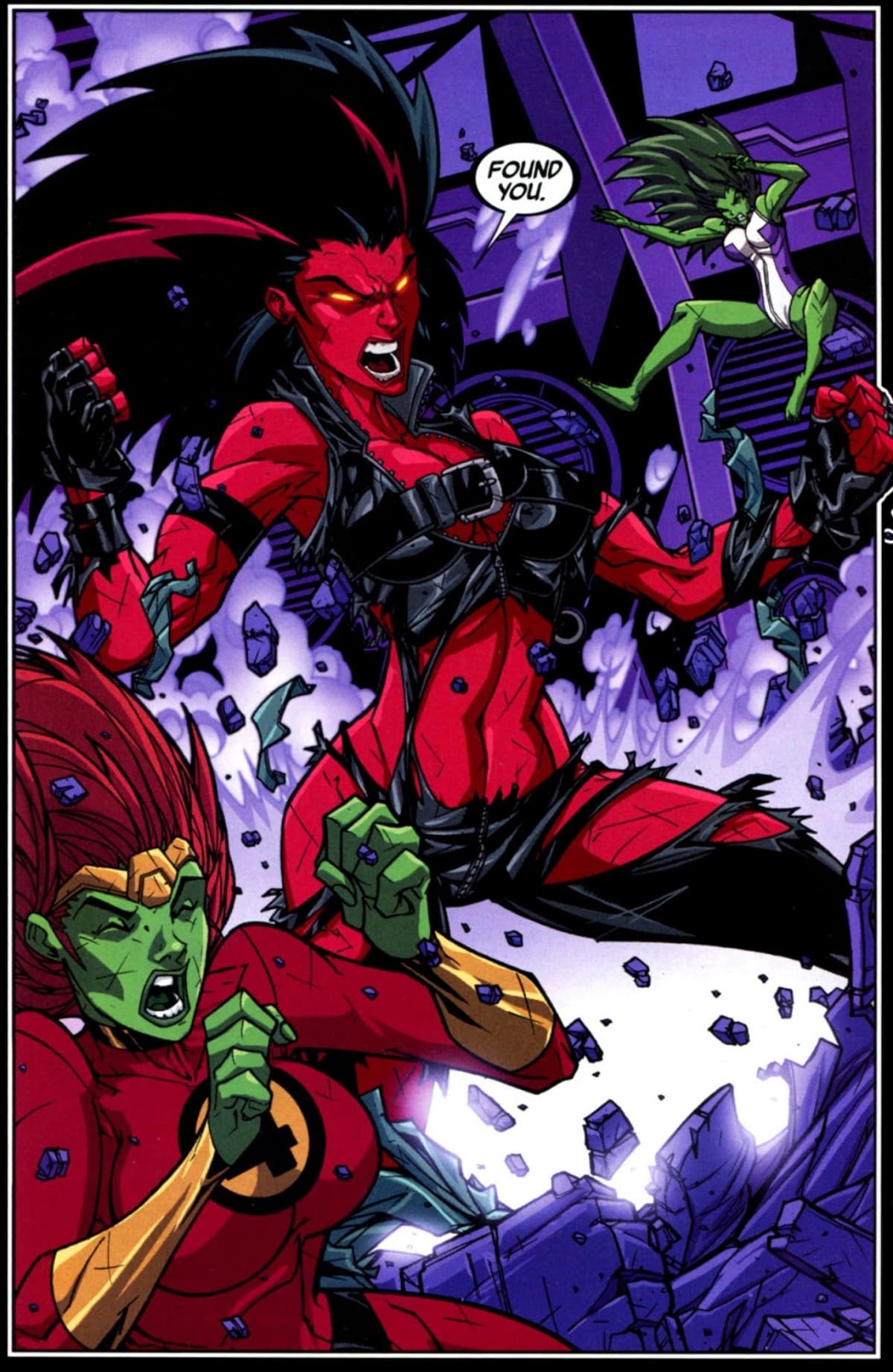 Jennifer Walters no es la única que toma el nombre de She-Hulk, después de la aparición de Red Hulk se descubrió que también existía una Red She-Hulk, quien era en realidad Betty Ross.