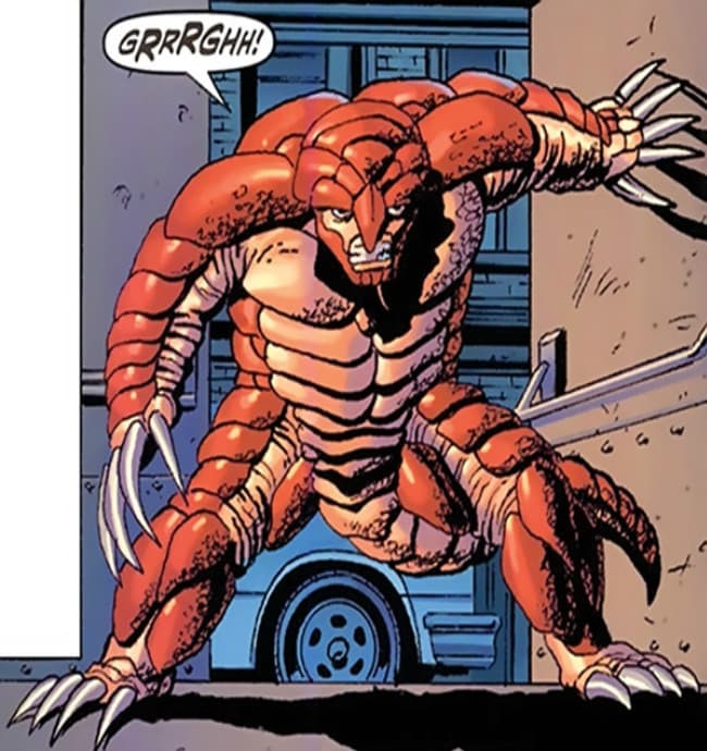 Porque no se podía poner más raro que esto: un armadillo humano. Cuando Antonio Rodríguez se decide a conseguir el dinero suficiente para curar a su novia de una enfermedad terminal, sabe que necesita mejorar sus posibilidades. Como un criminal, decide sacrificar su cuerpo y unirse a un experimento donde fusionarán sus genes con los de un armadillo. Le brinda agilidad, resistencia y fuerza, además de una armadura de armadillo para todo su cuerpo. El doctor Karl Malus hace un gran trabajo. Como The Armadillo sigue cometiendo fechorías hasta reunir el dinero suficiente para curar a María, su novia. Cuando lo consigue y ella se cura, lo deja porque su nueva apariencia le parece muy fea. En un estado muy WTF se queda devastado y abrumado. Sigue con su vida de criminal, pero esta vez para juntar dinero y revertir el proceso que lo hizo un armadillo gigante. Una de sus batallas más impportantes es contra el Capitán América, quien lo deja libre cuando se entera de todo lo que sacrificó por María.
