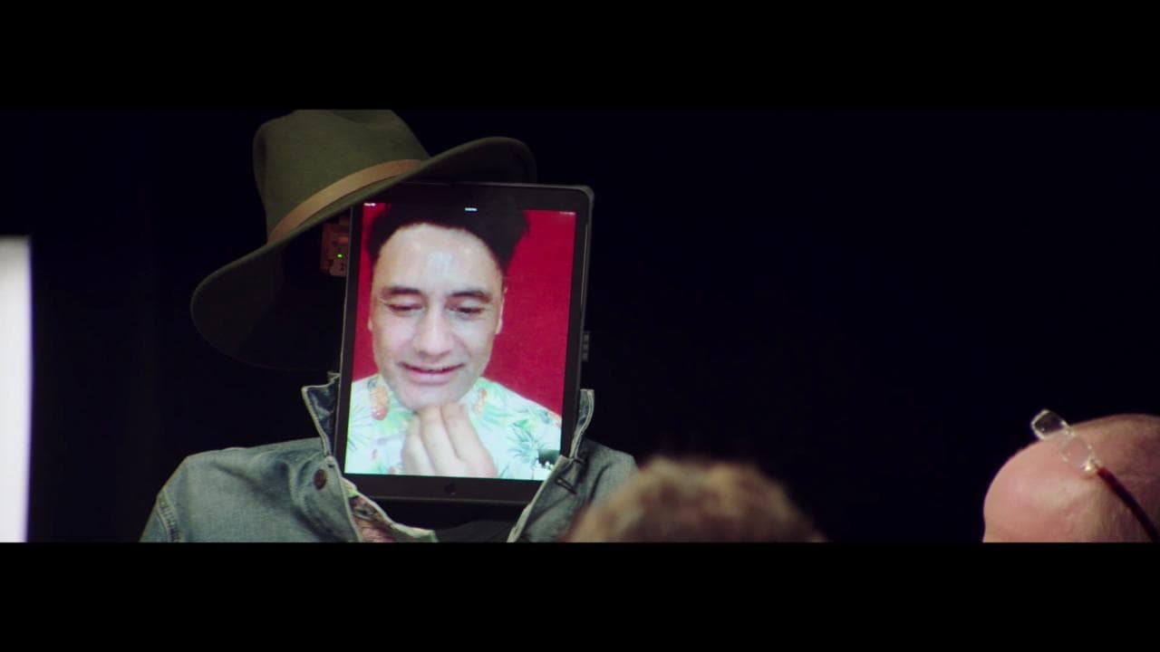 Taika Waititi no pudo reunirse con el resto de los directores en carne y hueso, así que apoyaron un iPad sobre una camisa hawaiana, le pusieron sombrero y comenzaron la videollamada.