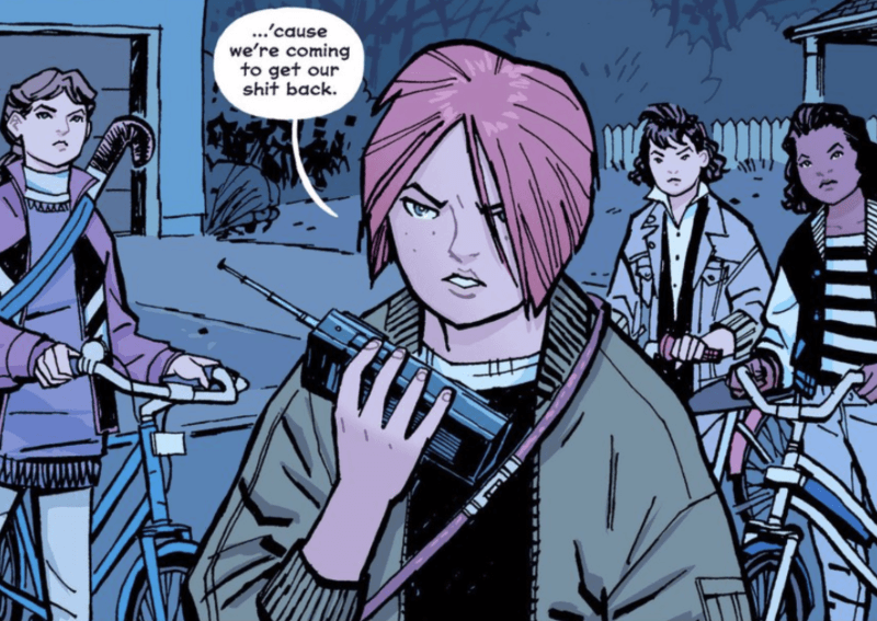 Una pandilla de chicas que reparten periódicos en Cleveland se ve envuelta en aventuras asombrosas. Empieza alegre y muy plano, pero rápidamente se vuelve una trama llena de suspenso y de dudas. ¿Qué va a suceder después? Es una gran mezcla de lo bonito con lo bizarro.