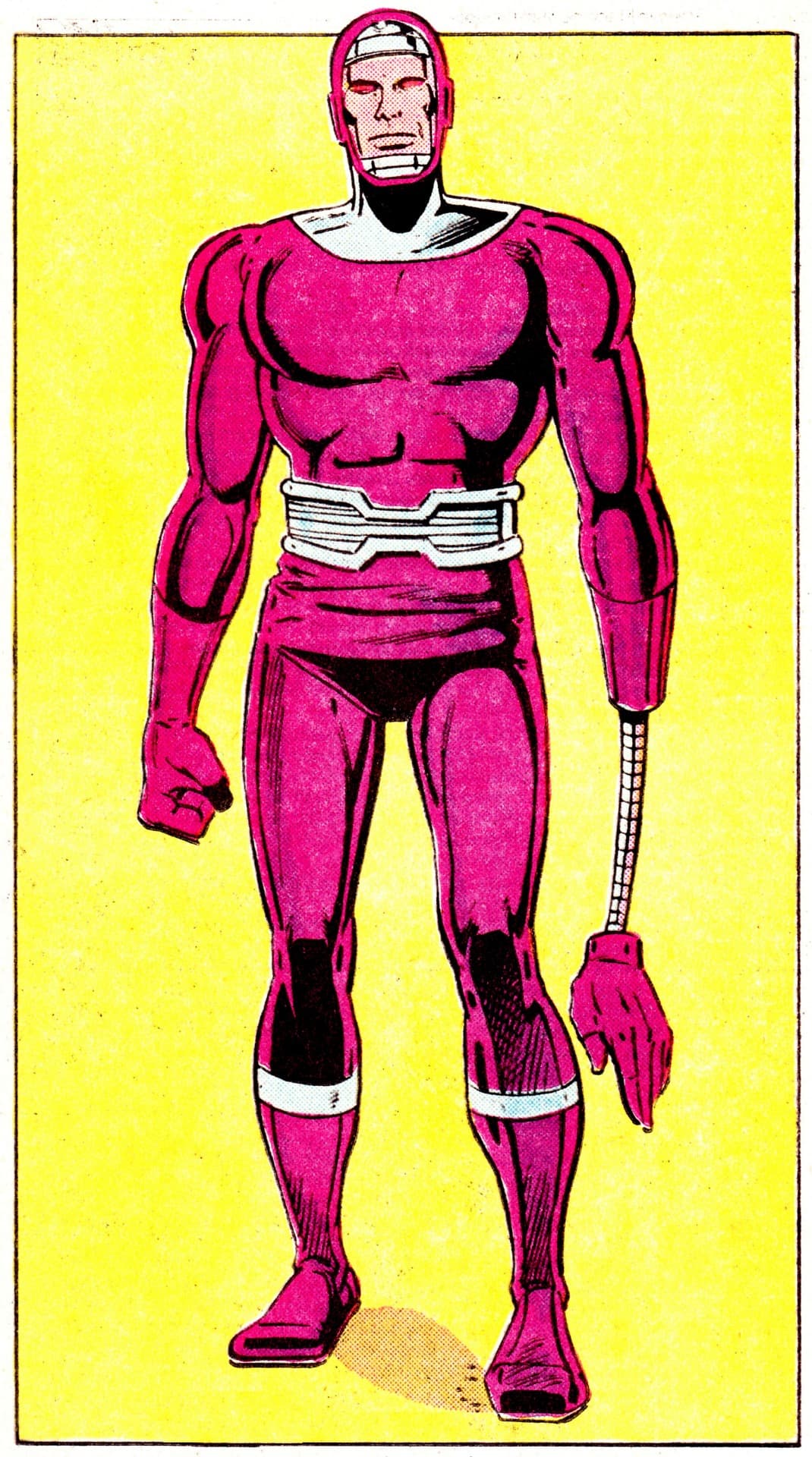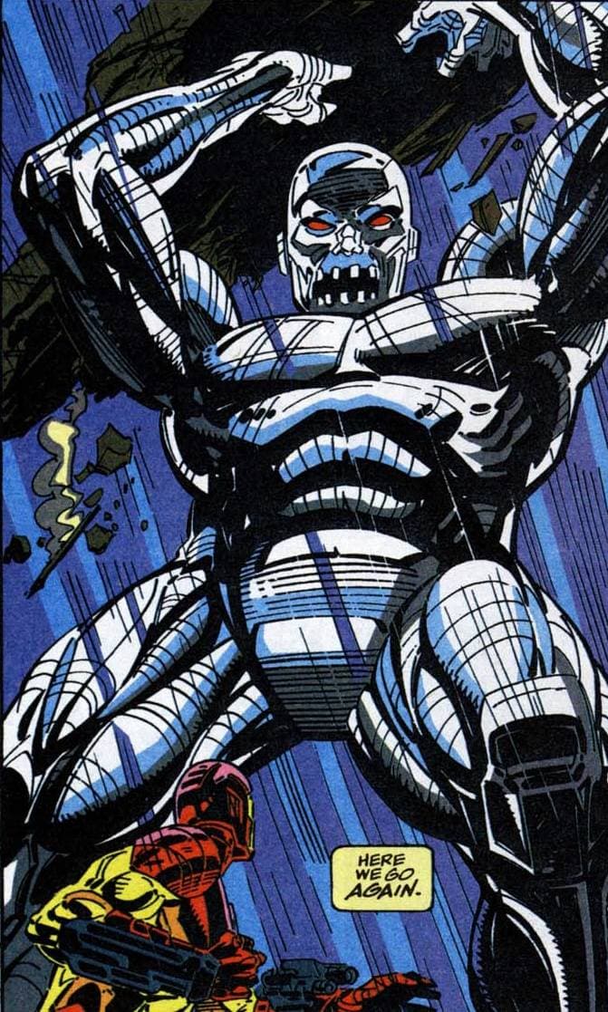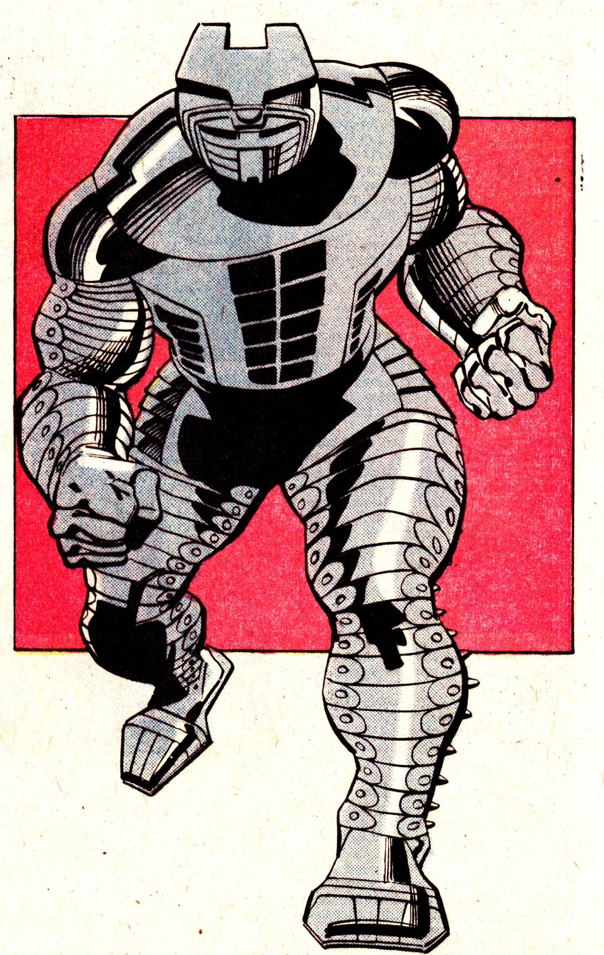 Es un androide diseñado para el exterminio por una raza extraterrestre que, paradójicamente, murió a manos de Ultimo. Persiguió a varios remanentes de esta especie hasta quedar atrapado en un cinturón de asteroides que lo envió a la Tierra prehistórica donde espero en estasis (o estado de suspensión) hasta que el Mandarín trató de usarlo en contra de Iron Man. Es virtualmente indestructible, capaz de absorber energía y aumentar aún más su tamaño colosal.