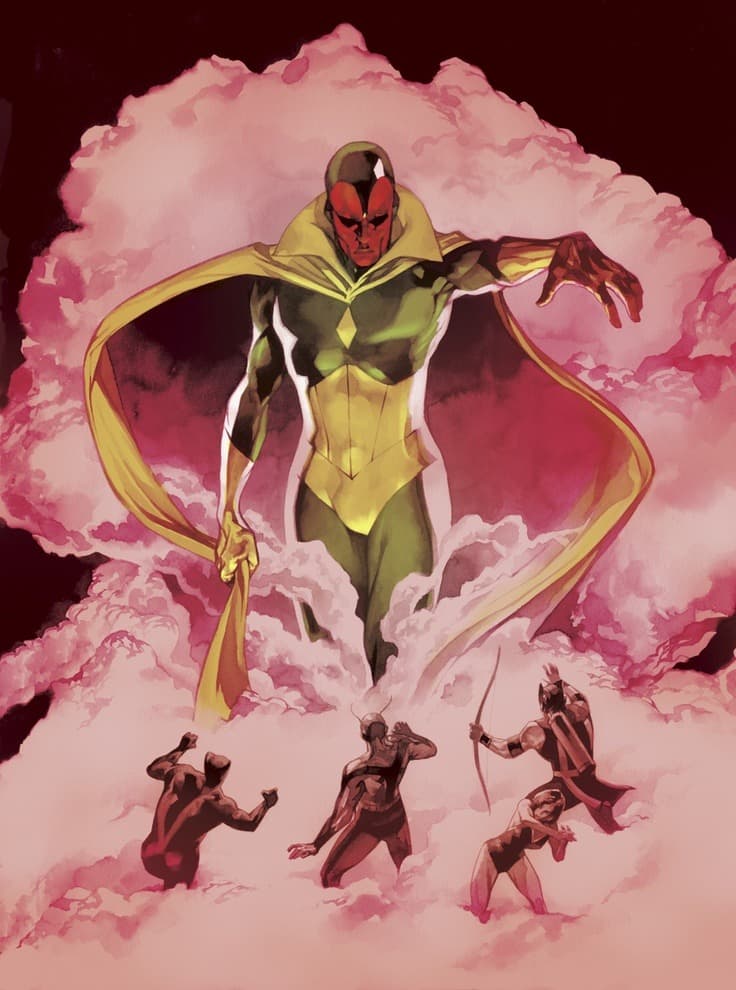 Es un androide del tipo synthezoid (una forma de vida tecno-orgánica) creada por Ultron con apariencia heroica para que se infiltre en los Avengers y los guíe a una trampa. Vision es convencido de traicionar a su creador y de usar sus poderes para el bien, como ser su fuerza y resistencia superior, la capacidad de vuelo y de manipular su densidad física lo que le permite atravesar objetos sólidos, o el enfocar la energía solar en forma de rayos ópticos.