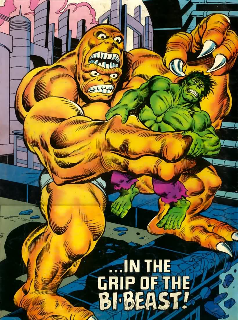 Es un androide creado por una antigua y extinta subespecie de los Inhumanos. Bi-Beast fue el único que quedó en una ciudad semi-destruida, oculta y abandonada hasta la llegada de Hulk que estaba peleando contra Harpy (Betty Ross), Bi-Beast confundió a Harpy con uno de sus amos, por lo que capturó a ambos y trato de que Banner reconstruya su ciudad. Banner cura de su estado a Betty Ross, lo que despierta la furia de Bi-Beast, entrando en combate contra Hulk.