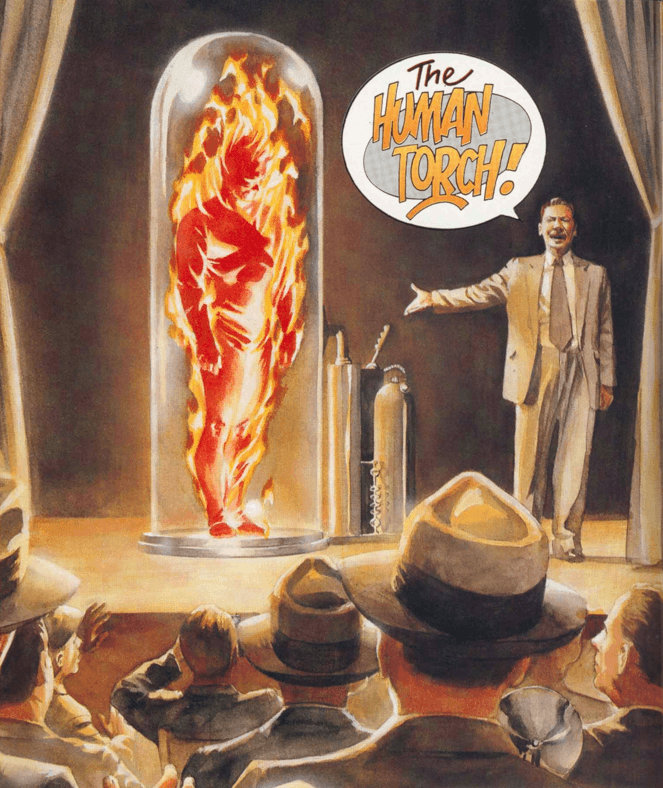 Este androide creado por el científico Phineas Horton tiene la habilidad de prenderse fuego y alcanzar grandes temperaturas al exponerse al oxígeno. Viéndolo como un riesgo Horton decide encerrarlo en concreto, pero una grieta le provee de oxigeno por lo que puede encenderse y escapar. Cuando logra controlar su poder, escapa de su creador y jura proteger a la humanidad.