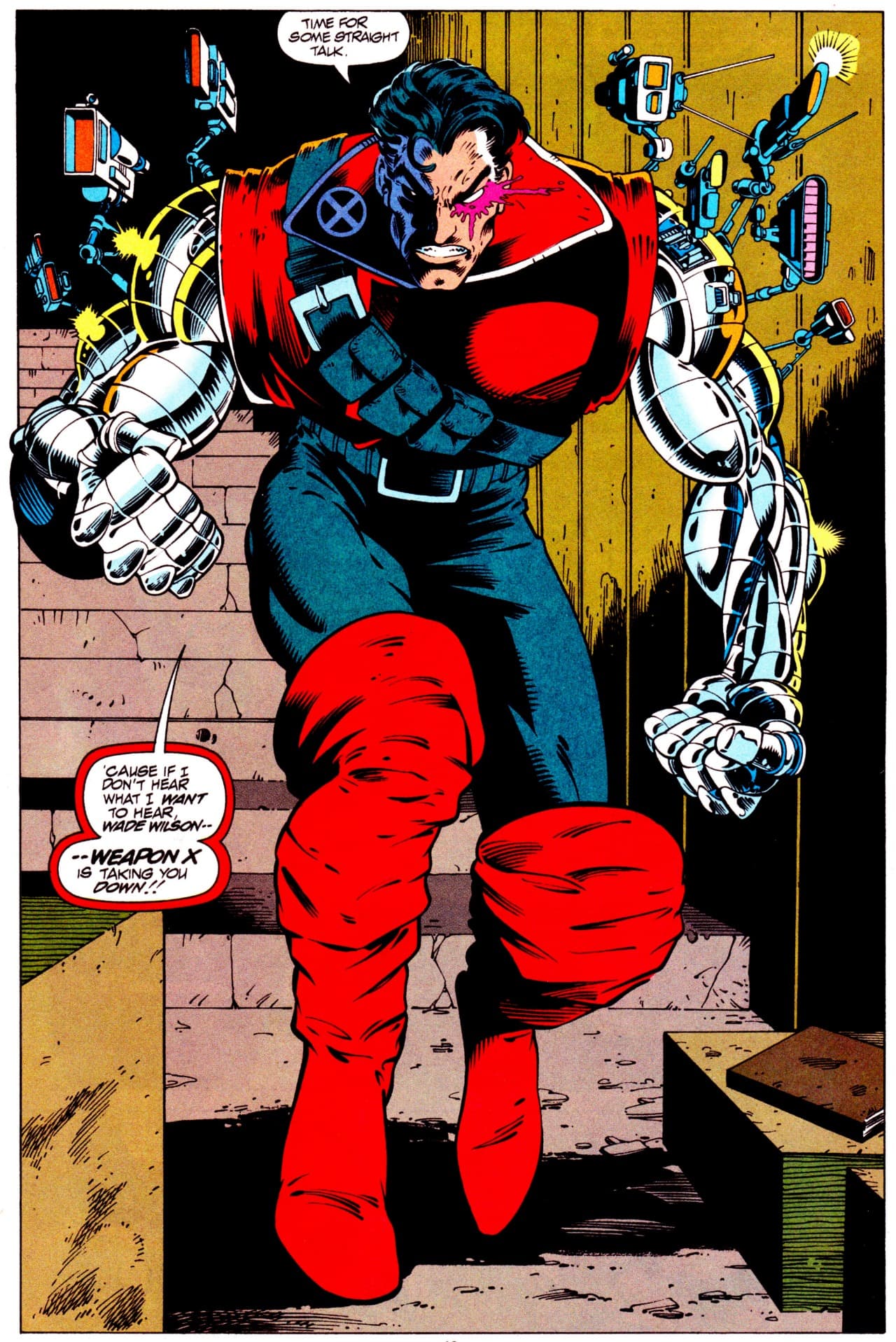 Es un agente canadiense que formó parte del equipo de mercenarios de Cable, junto con Wade Wilson (Deadpool) formo parte del proyecto Weapon X, donde le hicieron mejoras cibernéticas a su cuerpo con tecnología del futuro de Cable (siglo XXXX), sustituyendo sus piernas y brazos, parte del torso, un ojo y un segmento de su cerebro. Puede adaptar cualquier arma externa a su cuerpo.