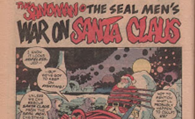No podíamos colocar de primero en esta lista otra cosa que no fuera esta locura, producto del lápiz de Jack Kirby. Originalmente estaba planeada para ser publicada en el #7 de la serie; sin embargo, por lo raro de la historia, fue guardada en un cajón durante varios años, hasta que finalmente DC decidió publicarla. La historia trata del intento del Sandman por demostrar que Santa Claus es real. Una vez que encuentra al barbudo, descubre que se encuentra en medio de una batalla campal contra un ejército de hombres-foca, que están molestos porque no recibieron el regalo que habían pedido.