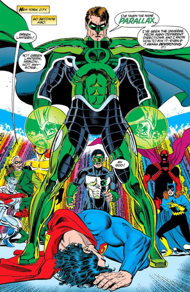 La destrucción de Coast City, hogar de Green Lantern, en manos del villano Mongul lleva a Hal Jordan a la locura. Tratando de reconstruir la ciudad decide absorber toda la energía de la batería central en Oa y usar su poder, pero en el camino asesinará a todos los Green Lantern Corps. Por supuesto, esto no solo dividió a muchos fans que veían cómo uno de los grandes del DCU se convertía en un temible y sanguinario villano, sino que también estaba el hecho de que Hal sería reemplazado por un nuevo Green Lantern: Kyle Rayner.