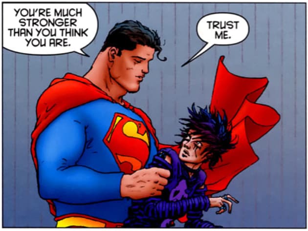 Grant Morrison se ganó la alabanzas infinitas de fans y críticos con su famosa historia All-Star Superman, la cual emplea una visión íntima y muy emotiva del hombre de acero en sus últimos días, ya que ha sido diagnosticado de muerte por absorber demasiada energía solar. En una de sus patrullas por Metropolis, Clark escucha a una chica que hablaba sola en la azotea de un edificio. Por sus palabras se da cuenta de que ella planea suicidarse, y es ahí cuando sube a confortarla con palabras que emocionarían al más estoico fan.