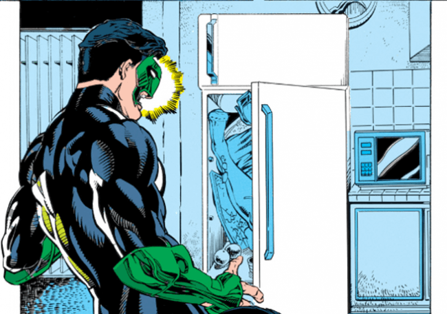 «La chica en el refrigerador» es un popular cliché que indica que cierto personaje femenino solo está destinado a morir, causarle dolor y algún tipo de reacción al protagonista masculino. Alexandra DeWitt fue el interés romántico de Green Lantern en 1994, pero solo duró lo suficiente para aparecer asesinada dentro de un refrigerador y causar el primer caso polémico de este popular estereotipo de cómics.