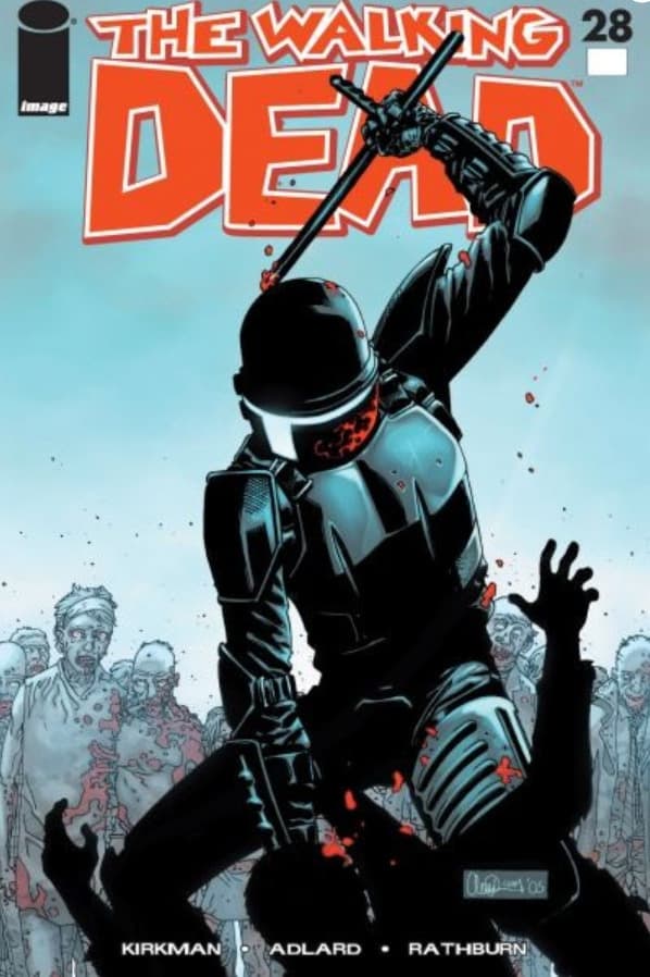 En el número 28, Rick tiene un enfrentamiento con El Gobernador, uno de los villanos más emblemáticos, carismáticos y peligrosos del primer cuarto del cómic. Cuando Rick, Michonne y Glenn son capturados, las cosas no se solucionan de manera pacífica, sino todo lo contrario. La sorpresa llega cuando El Gobernador, sin dudar y de manera efectiva, le corta la mano al protagonista principal de la historia.