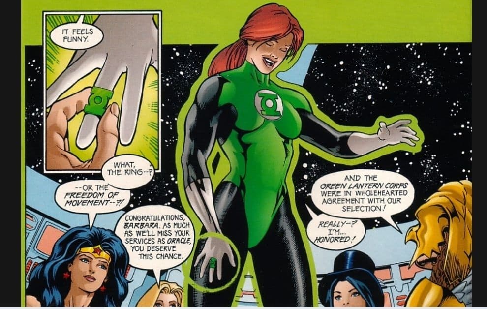 Más conocida en su rol como Batgirl u Oracle, la hija de comisionado Gordon no solo obtuvo un anillo de poder, sino que se convirtió en la Linterna Verde de la Tierra en una historia alternativa en los cómics de JLA: Created Equal #1 (2000).