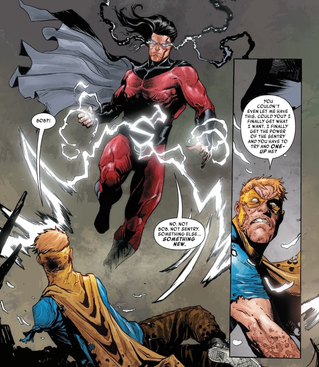 Sentry es uno de los héroes más importantes de la Tierra, pero durante el apogeo de su carrera tuvo un compañero llamado Scout, quien tenía sus mismos poderes pero con menor potencia.