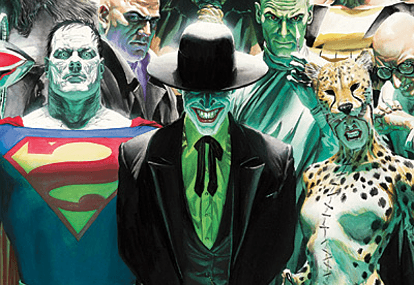 Si podemos sacar por uno minutos la mirada de los increíbles dibujos de Alex Ross, descubriremos que la serie limitada Justice tiene una buena historia de fondo. Múltiples villanos a lo largo del globo comienzan a tener visiones de un apocalipsis nuclear que la Liga de la Justicia no puede evitar y comienzan a trabajar en secreto para salvar el mundo. Sin embargo, todo resulta ser un plan de Lex Luthor, Brainiac y Gorilla Grodd para reunir de Legion of Doom. ¿La única falla en el plan? Se olvidaron de invitar al Joker y ya saben cómo se pone el villano cuando lo dejan afuera. Los Luthor no aprenden más… Joker termina ayudando a la Justice League y se convierte en un miembro instrumental a la hroa de detener la Legion of Doom.