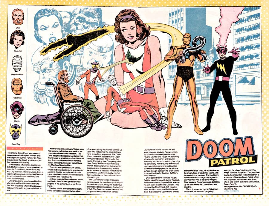 Uno de los trabajos más desconocidos del autor, pero uno de los más aplaudidos y considerados de culto en su bibliografía. El tratamiento magistral de un grupo de extraños seres desadaptados que le valió un lugar en el podio de los más originales autores de la industria. Como muchas veces acostumbra, decidió hacer todo a su forma matando personajes, haciendo constantes homenajes a la serie original y sumando elementos surrealistas que maravillan al lector de manera instantánea.