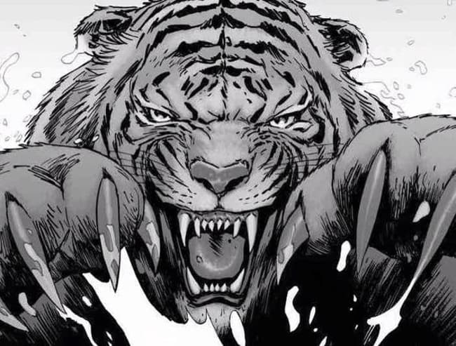 Shiva es la feroz mascota de Ezekiel. ¿Quién no querría ver un tigre destrozando walkers a comando de un excéntrico líder?