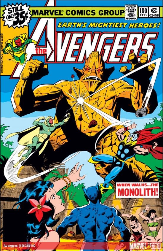 Las aventuras de los Avengers los llevan a todas partes del mundo y esta vez terminaron en una isla del pacífico sur donde encontraron a la monstruosidad conocida como Monolith. La gigantesca criatura de piedra era controlada por un tótem que estaba en manos de los nativos. Thor y Vision le hicieron frente con la ayuda de Beast para que pronto Monolith estuviera flotando a la deriva en el espacio abierto.