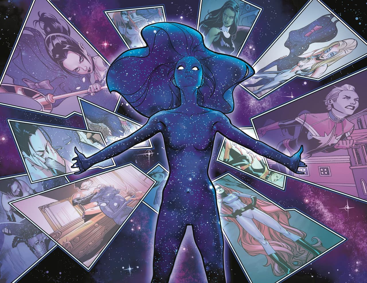 El escritor G. Willow Wilson y el dibujante Jorge Molina se harán cargo del flamante equipo de A-Force. La dupla creativa tendrá a su cargo la desafiante tarea de lograr que los lectores nos familiaricemos y lleguemos a aceptar a la más reciente superheroína de Marvel, Singularity (esa que parece un cielo nocturno con forma de muchacha; si no la conoces la verás más adelante en este artículo).