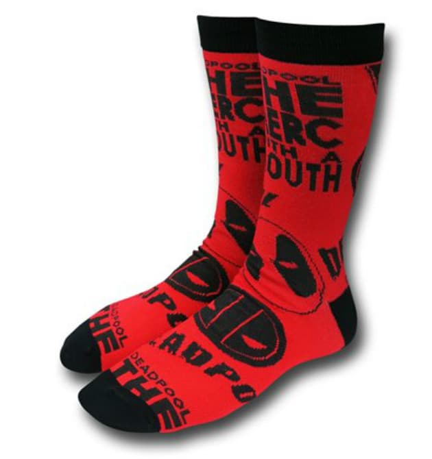 Dignos de un fan de Marvel. Algunos dormirán con ellos y otros los usarán hasta en una graduación o boda. Es un par rojo de calcetines con Deadpool por todas partes. No dejes pasar la oportunidad de tener los tuyos. Están aquí.
