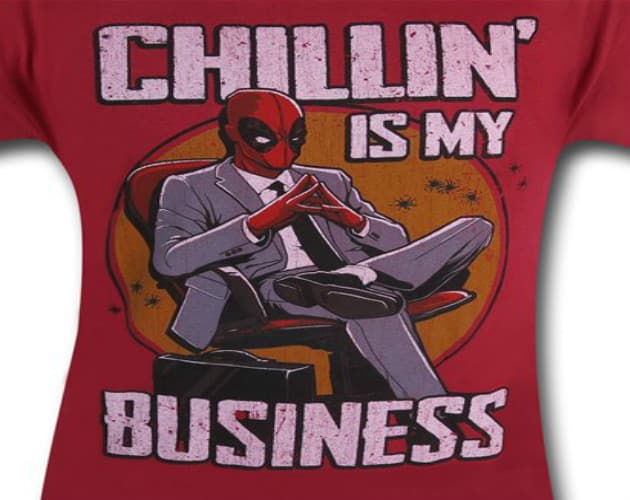 Un trajeado Deadpool dice que su deber está en relajarse. Aprecia su actitud calmada. Esta camiseta la puedes conseguir aquí. ¡Qué porte! ¡Qué actitud! ¡Qué Deadpool!