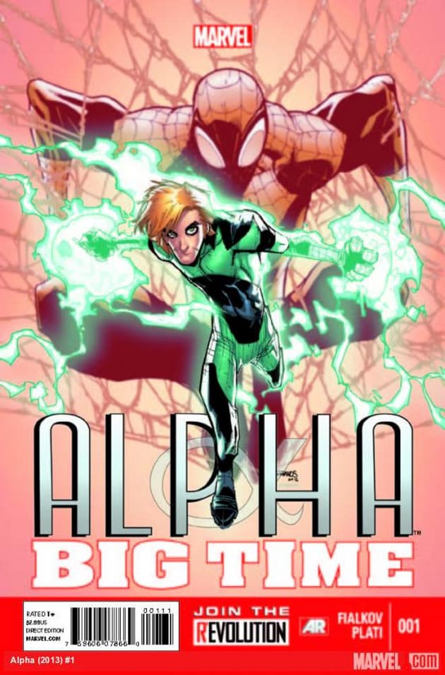 Directo de las páginas de Amazing Spiderman, nos llega esta mini serie de Alpha, Alpha Big Time. Se trata de un adolescente que por accidente fue irradiado con partículas experimentales producto de una máquina creada por Peter Parker, alias Spiderman.