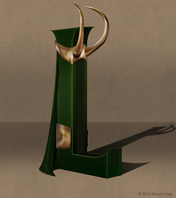Una idea bastante divertida e interesante, por parte de Simon Koay, que se decidió a representar cada letra del abecedario orientada a un superhéroe o villano de los cómics, según su inicial.