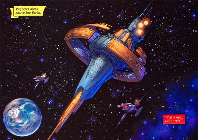 La información adicional que nos proporciona el reboot, es escasa; simplemente se brinda la distancia exacta a la que orbita (en relación a la Tierra), la cual es de 35,888 kilómetros, y las nuevas áreas principles: cámara de encuentro (una especie de cuarto de invitados), y bahía espacial.