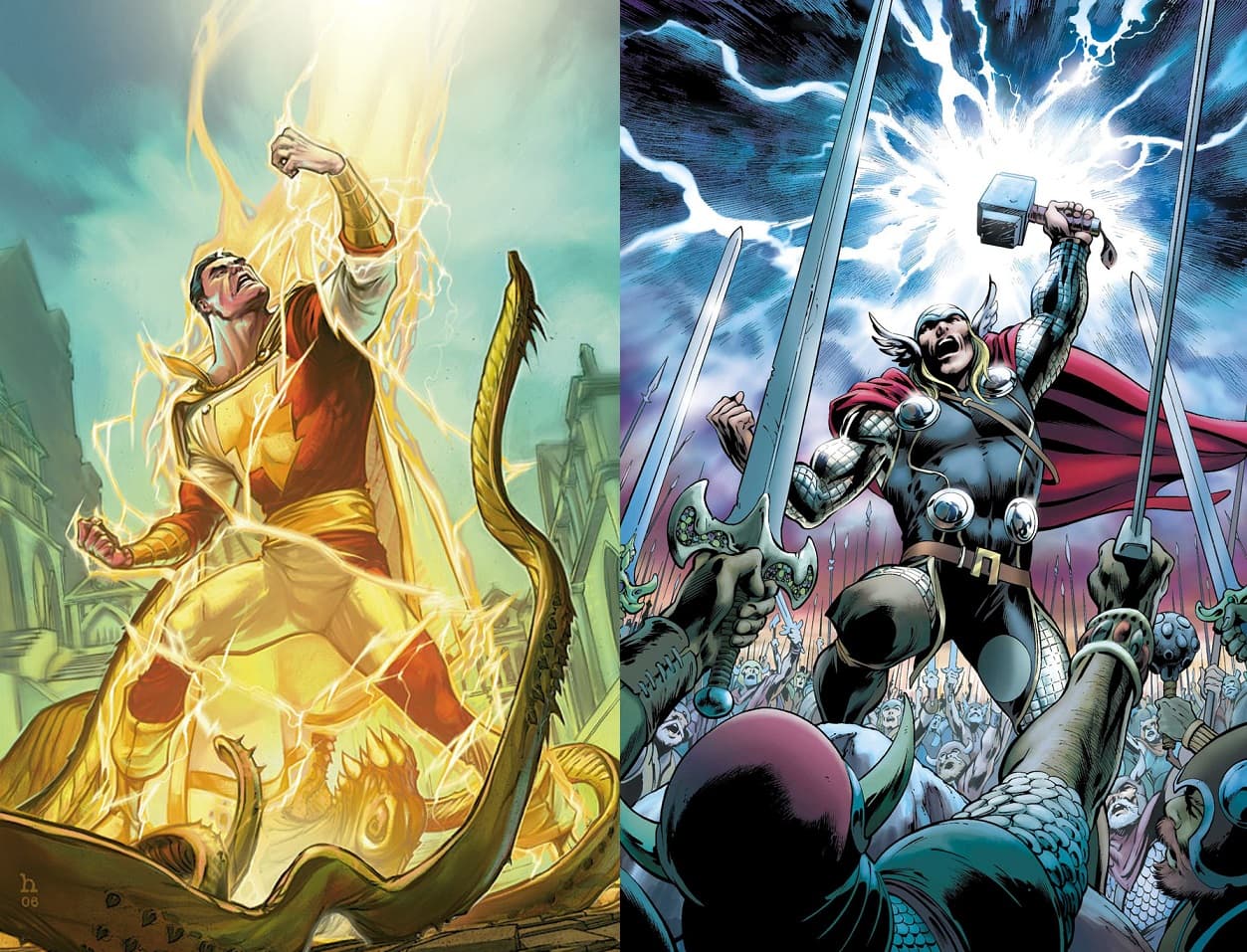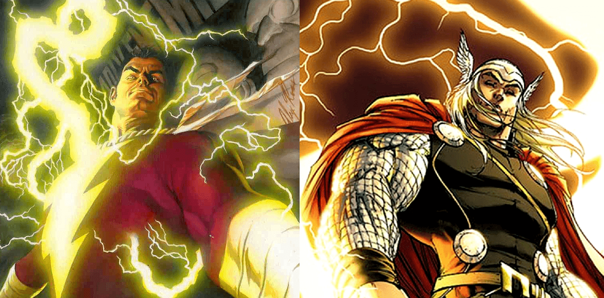 La Batalla Comparativa es decidida por ti, pasa la hoja y veras hechos intrínsecos de cada contendiente, dale un punto al tópico que te guste más, al final sabrás cuál de estos personajes prefieres si eliges basándote en la comparación de sus antecedentes. En esta ocasión y a pedido de varios usuarios, enfrentaremos a Thor representando a Marvel y a Captain Marvel representando a DC Comics.