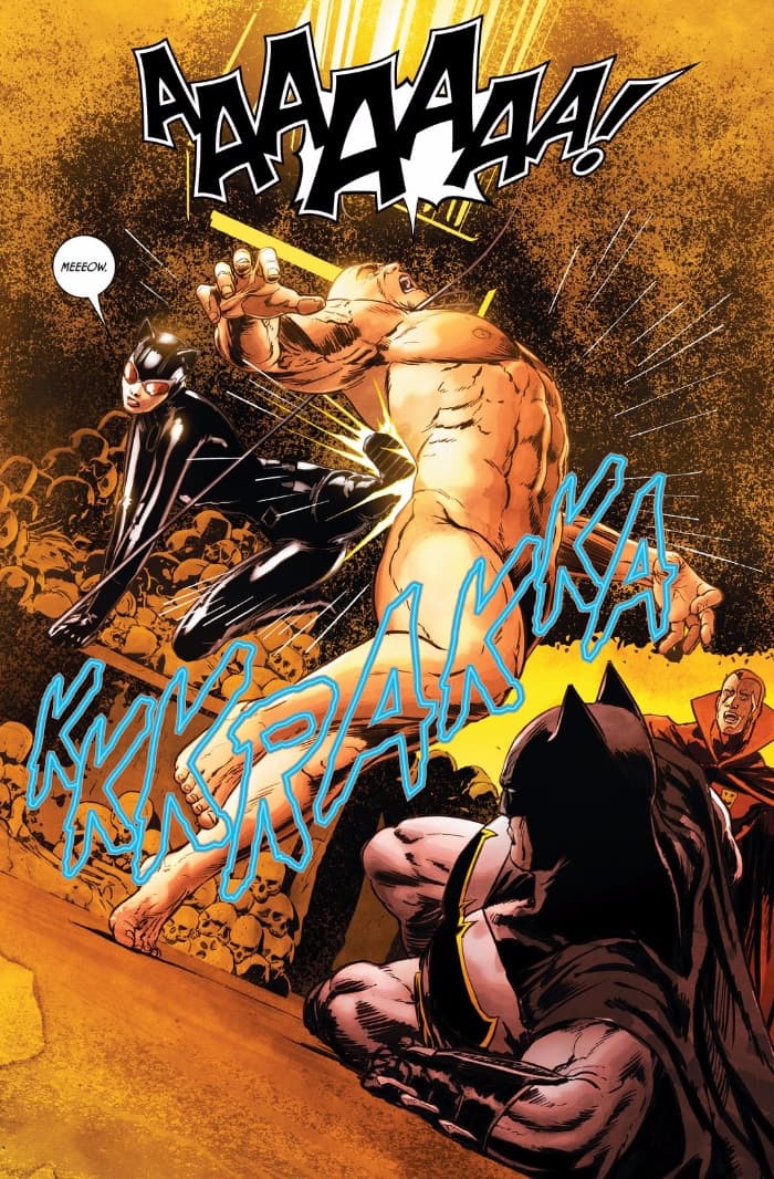 En Batman #13 llegó a su fin el arco argumental I Am Suicide y en el clímax de este deslace se llevó a cabo el duelo entre héroe y villano. Por mucho tiempo creímos que Batman tenía las de perder. El equipo que estableció para viajar a Santa Prisca se fue deshaciendo, con Punch y Jewelee aparentemente muertos, Bronze Tiger capturado, Ventriloquist perdido y Catwoman traicionándolo para pasarse al lado de Bane. Las cosas sin embargo se emparejaron durante el último número.