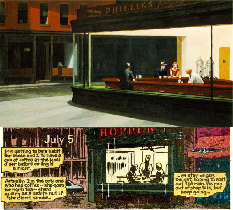 Mazzucchelli se inspira en Chicago para darle vida a Gotham (ejemplo que seguiría Christopher Nolan décadas después cuando usó dicha ciudad para los exteriores de sus dos primeras películas del caballero oscuro); utiliza una variada paleta de saturados y elige crear detallados fondos cuando lo considera necesario o cerrar las fugas con blanco o negro sin explicación aparente. La principal influencia del dibujante es Edward Hopper, uno de sus pintores favoritos, a quien honra colocándole su nombre a un bar en el tercer episodio.