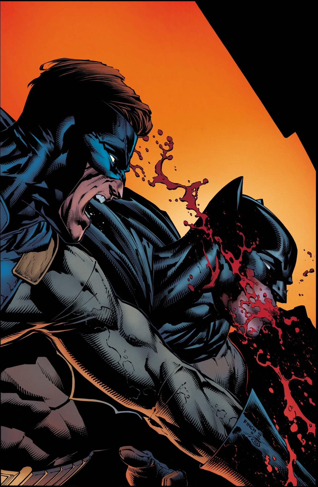 Duke Thomas queda a cargo del interrogatorio mientras Gotham apalea sin problemas a Flash, Aquaman y Superman. La verdad que obtiene es terrible: “ Batman no puede ganar” revela Gotham Girl sobre un sublime panel que demuestra todo el talento de David Finch. Con el héroe vuelto villano mirándonos directamente a los ojos y todo el desastre que causó a sus espaldas. La contra imagen es un panel que muestra un Batman golpeado, tratando de ponerse de pie, una fantástica herramienta que el ilustrador utiliza para ponernos en la piel del héroe casi derrotado.