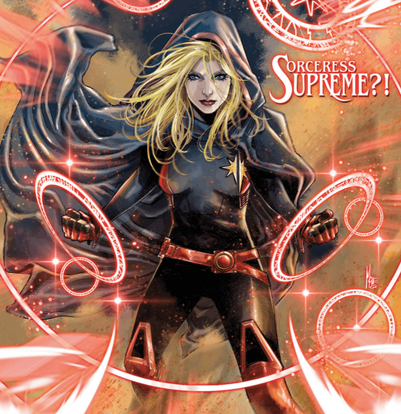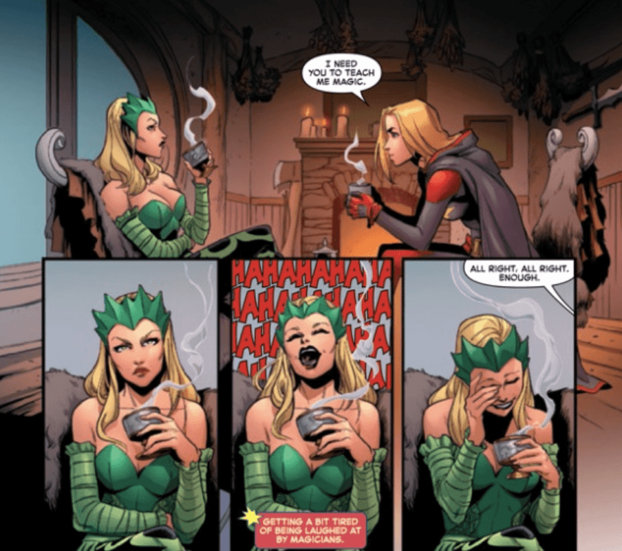 Danvers se acerca con la villana, quien en un inicio se burla de ella, hasta que la Capitana le dice que Doctor Strange no quiso enseñarle. Esto obtiene la atención de Enchantress y accede.
