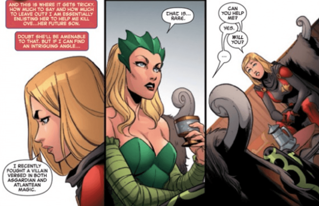 En el nuevo cómic de Kelly Thompson, Jacopo Camagni, Espen Grundetjern, y VC's Clayton Cowles, Capitana Marvel #29, Danvers busca la ayuda de Enchantress, su enemiga y madre de Ove.
