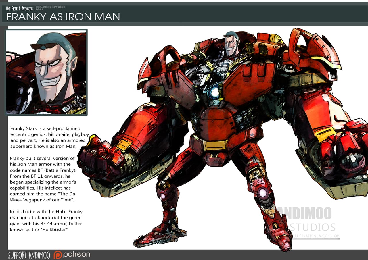 Primero, te mostraremos a Bin1 6/5, quien ha realizado clips y fan-arts increíbles, combinando los estilos de Idol Master, con los personajes principales dentro de la película. Y luego de ello, pasaremos a enseñarte los diseños de Andimoo, un artista que ha dado en el clavo a la hora de crear estupendos mash-ups entre One-Piece y The Avengers.
